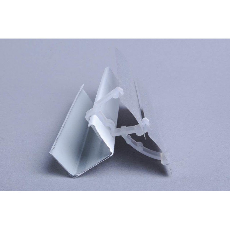 Используется, если цвет карниза не совпадает с цветом ламелей и его необходимо скрыть. Называется еще клипс для маскирующей накладки. Состоит из трех частей. На карниз устанавливаются два крепления в которые вставляется ламель шириной 89 мм. Дополнительными планками ламель декорируется по бокам. Таким образом карниз скрыт от глаз и эстетика полностью соблюдена.